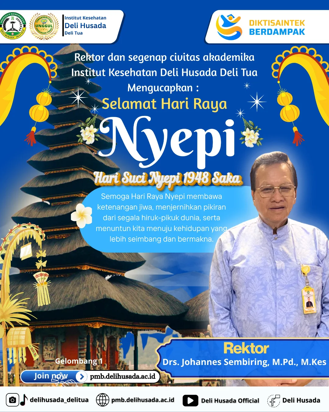 Rektor dan seluruh civitas akademika Institut Kesehatan Deli Husada Deli Tua mengucapkan selamat merayakan Hari Suci Nyepi.